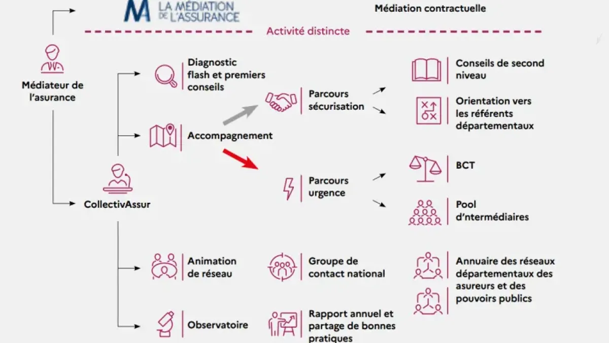 Si CollectivAssur identifie, au terme de son diagnostic flash, une situation d’urgence (telle que l’absence de proposition contractuelle, après une résiliation unilatérale ou au terme d’un contrat, malgré les démarches engagées pour trouver un nouvel assureur) elle réoriente la collectivité vers :
