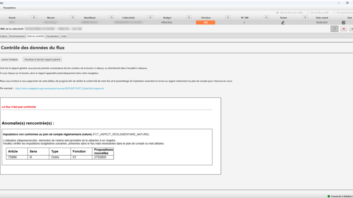 La présence d’erreur n’est pas bloquante pour le scellement et la transmission en préfecture, attention toutefois, les montants en erreur ne seront pas pris en compte dans les documents budgétaires ni dans les totaux, ce qui peut entraîner des déséquilibres.