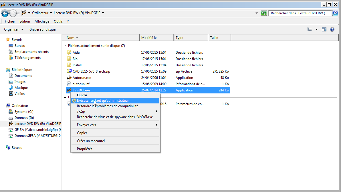 • faire un clic droit sur le fichier « LVisDGI » (ou « LVisDGI.exe » selon les modèles d’ordinateur)